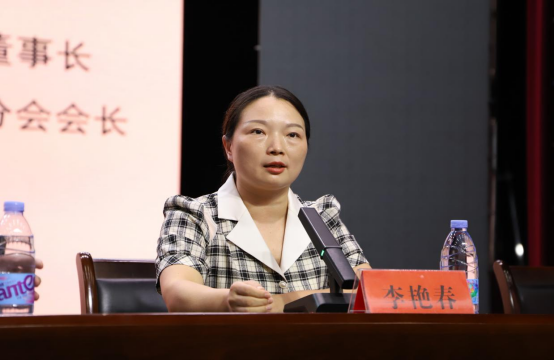 校友代表李艳春董事长发言。她从自身经历出发告诫同学们在生活和工作中要学会善良、真诚和感恩去取得他人的信任和赞识。