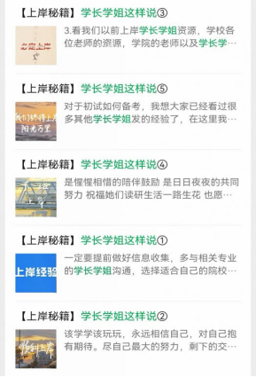 学院公众号定期发布"考研经验分享",邀请了已经考研上岸的优秀学子投稿,请他们传授宝贵的经验,为准备考研同学提供学习机会。