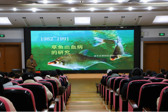 讲座中,杨教授回顾了自己从青年时代至今的求学、科研与育人之路。他结合自身经历,分享了在草鱼出血病防控、甲鱼病害防治、渔药安全替代等方面的科研突破,并阐述了在构建国家水生动物病原库、推动行业标准制定等方面所做的工作。杨教授还结合自身经历,巧用“曲突徙薪”“抱诚守真”“行成于思”“饮冰茹檗”等成语生动阐释了“超前思维”“诚信为本”“勤于思考”“甘于吃苦”等品质的重要性。“学会适应,但不盲从;敢于‘舍’,才会有‘得’;尊重别人,就是尊重自己”,这些朴实而深刻的话语,引来在场学生的频频点头与记录。杨教授在讲座中始终传递着做人、做事、做学问的“心法”,参与讲座的师生表示受益匪浅。