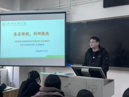 为进一步凝聚班级共识、明确科研方向、强化学风建设,帮助农业专业硕士研究生快速收心归位、投入新学期学习科研生活,我院于3月10日下午在T3-B405召开“春启新程·科研提速”农业专业硕士研究生第一次主题班会。参加本次班会的有生环学院副院长罗丛强、合成生物产业学院副院长张向阳,学院研究生秘书莫平,学院研究生辅导员贺青及2025级农业专业硕士研究生。